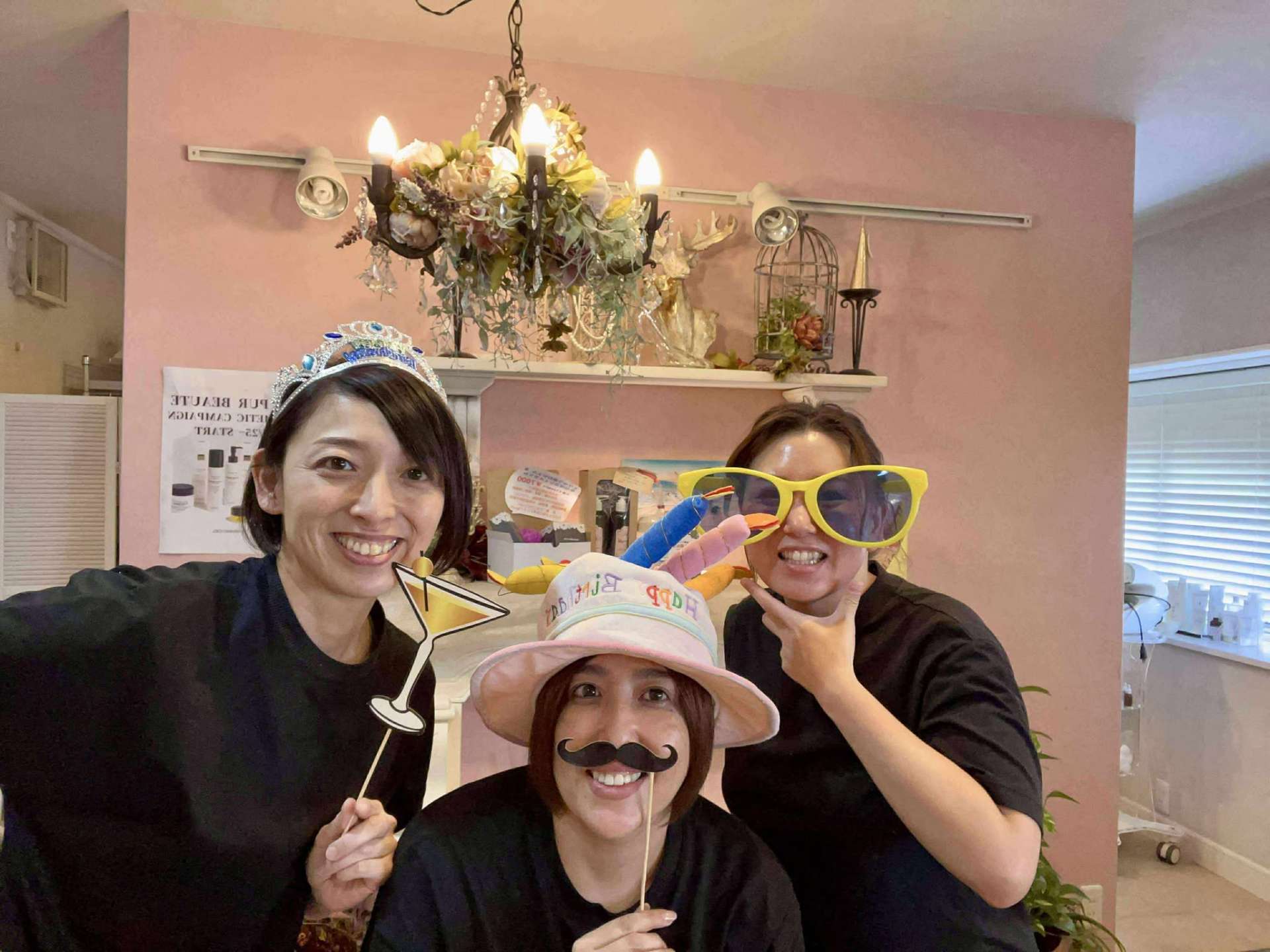 ちゃらけたハッピーバースデーサングラスをアネキにかけさせようとウッキウキのみなみ。